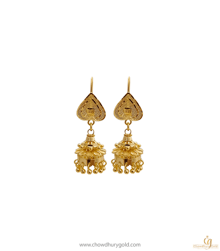 Enhance your look with 22k gold jhumka from Chowdhury Gold.